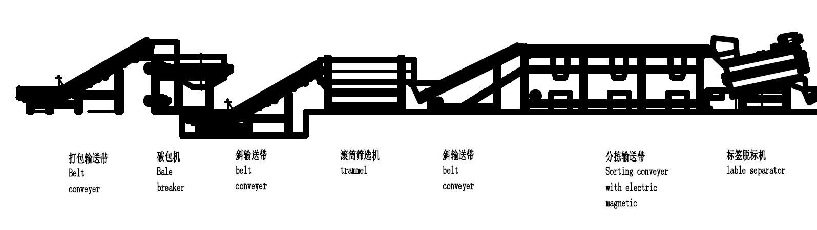 该生产线主要用于处理废弃 PET 塑料瓶(矿泉水瓶、饮料瓶)。经过去标、破碎、清洗、干 燥、除膜等工序后,将废旧 PET 塑料瓶加工成高品质 PET 瓶片。