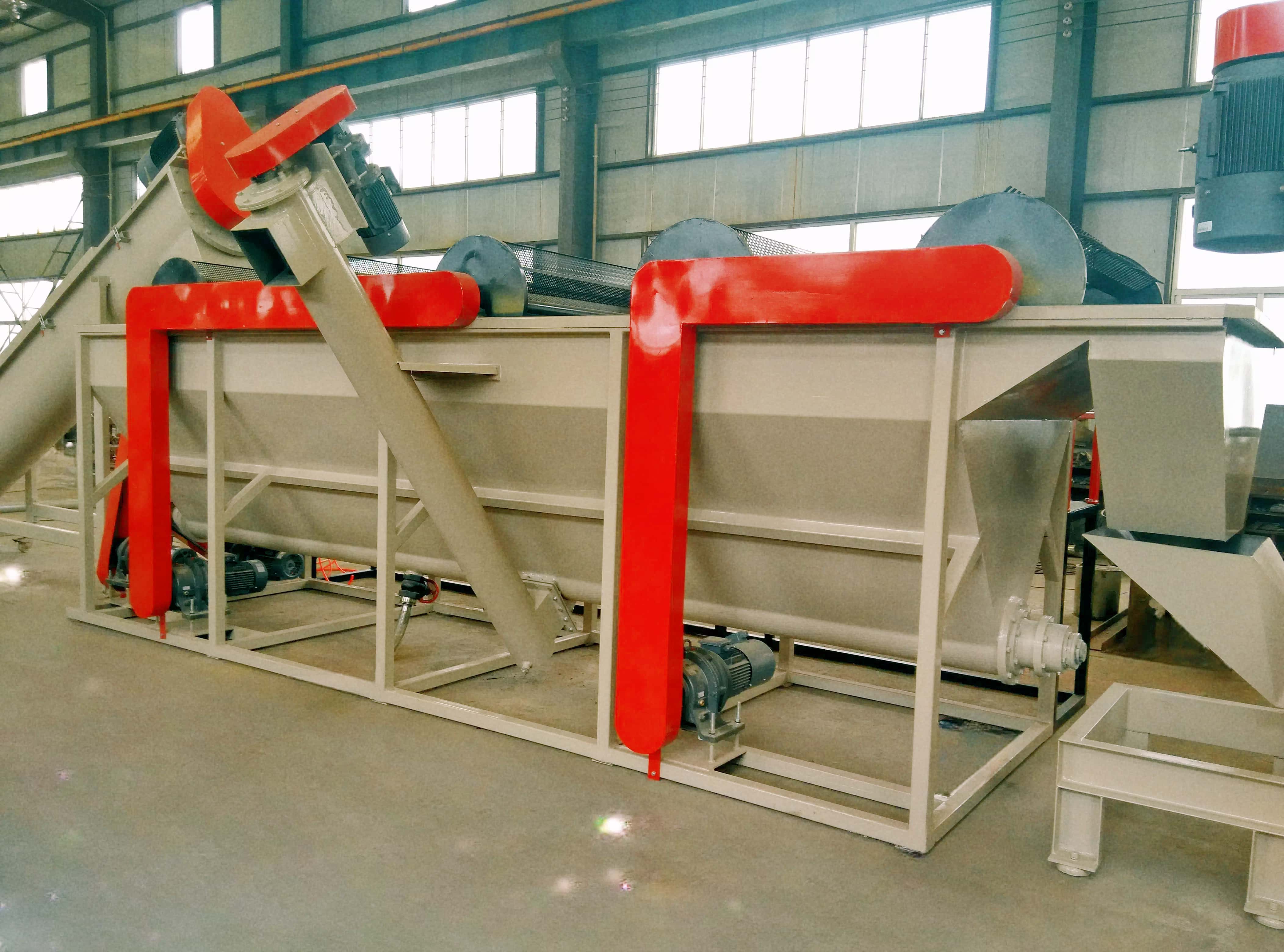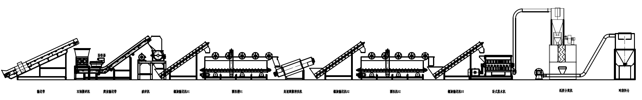 该生产线主要用于处理 PP、PE、PS、PVC 等硬质塑料,通过撕碎、破碎、清洗、脱水、烘 干、分选等工序,得到干净且分类后的 PP、PE 等塑料片。