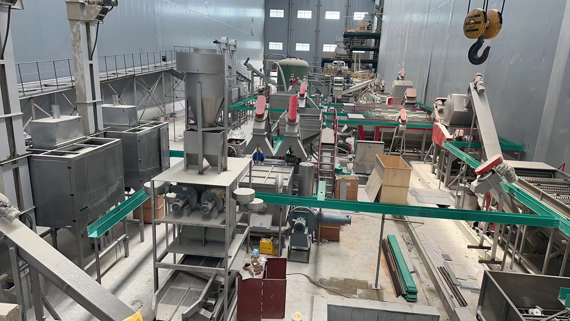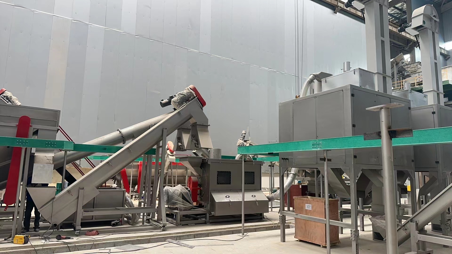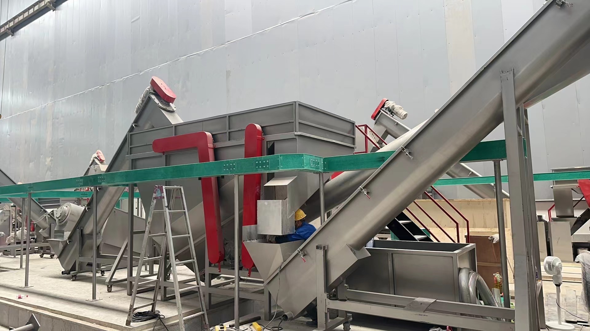 塑料破碎清洗分选生产线(3T/h)安装进入尾声
