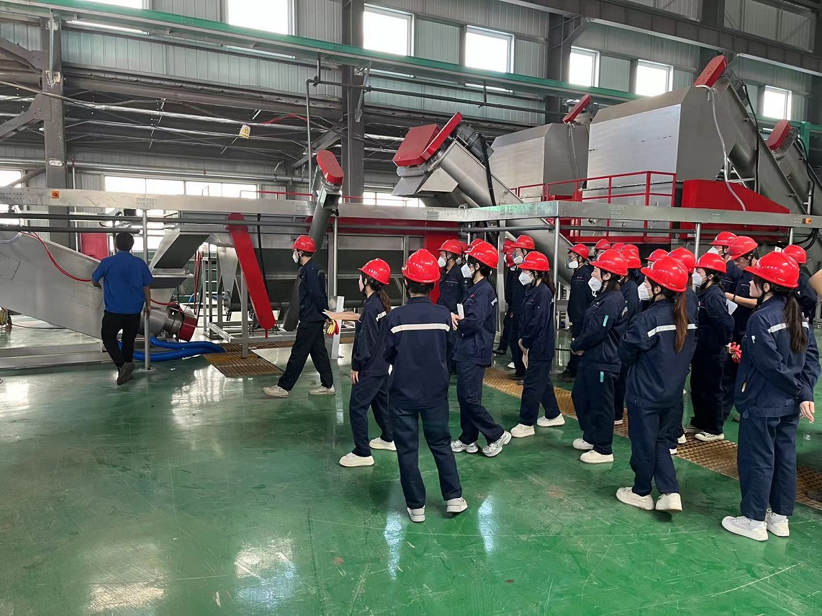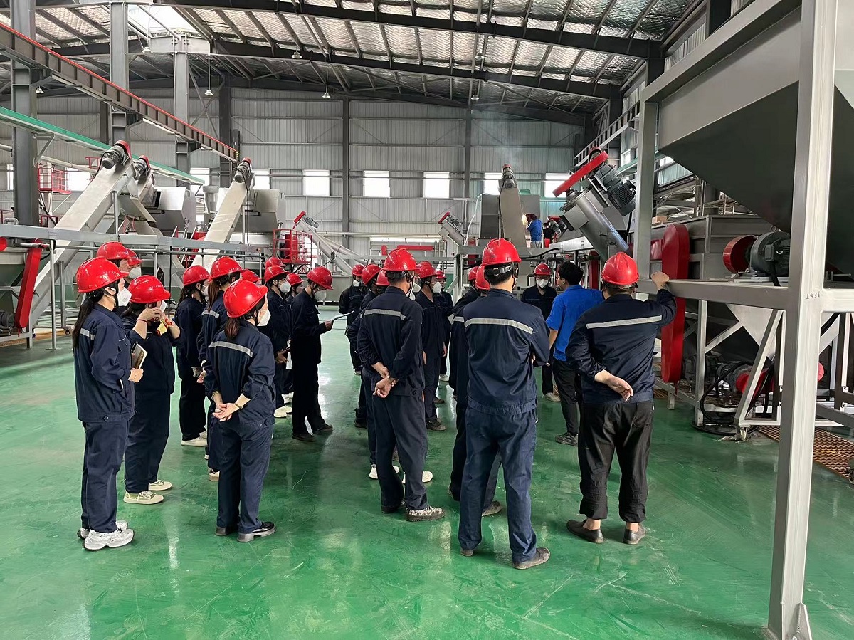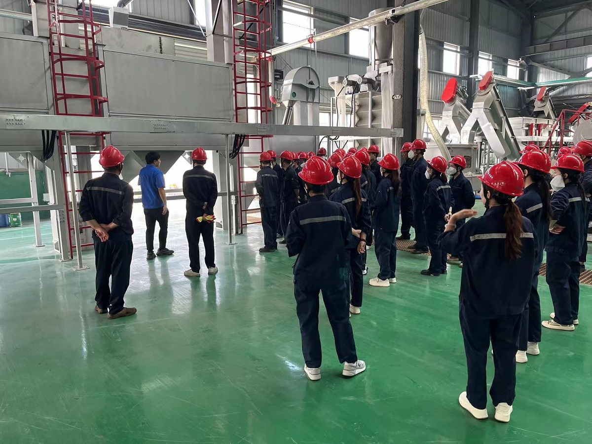 近日,安徽客户工厂的塑料破碎清洗分选生产线已完成安装,正准备进入开机调试阶段。为了确保设备能够高效、安全地投入使用,我公司技术团队赶赴客户工厂,对员工进行详细的操作培训,讲解各部分设备的操作方法。